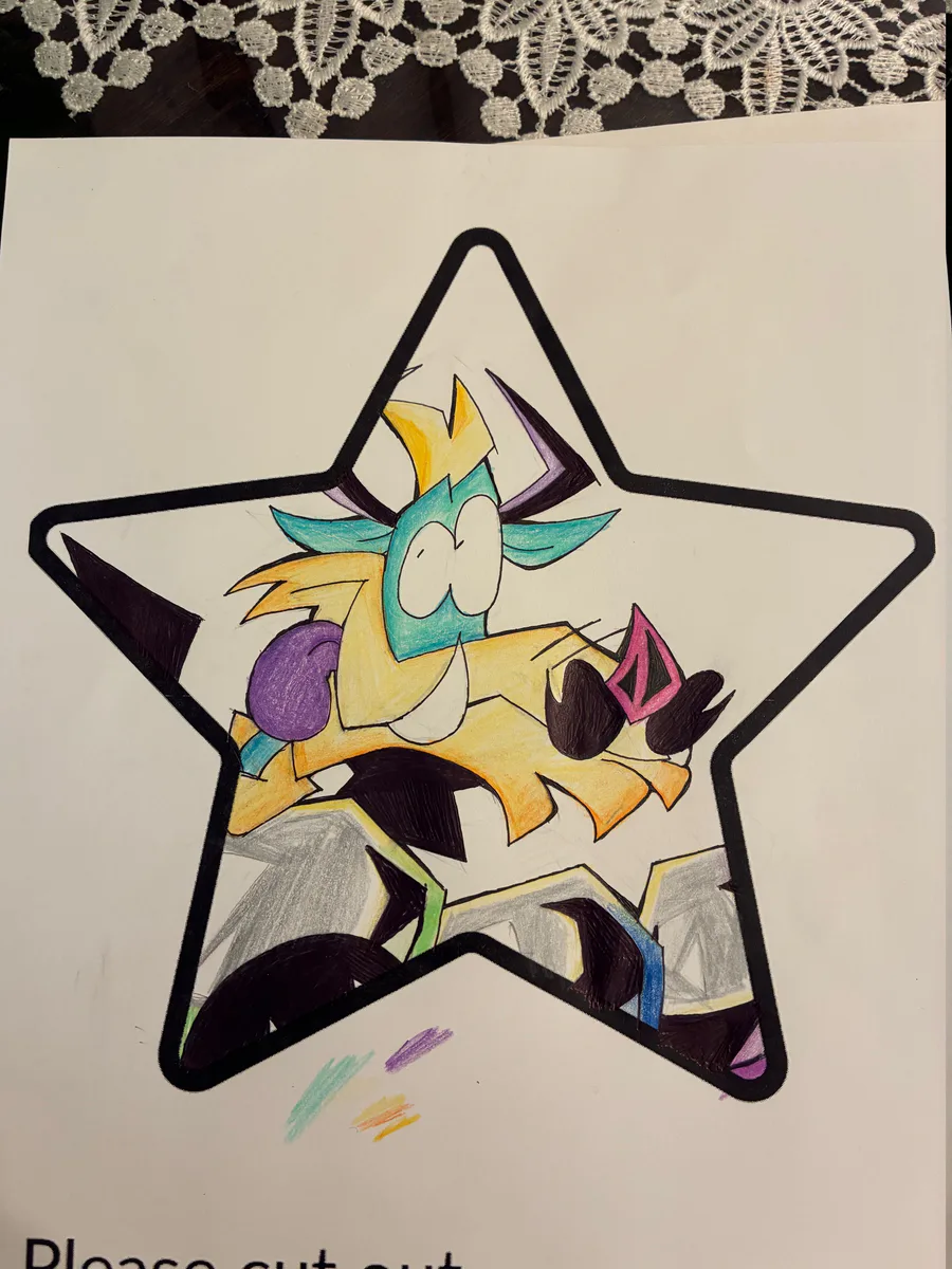 [Freako Star + Annie Drawing on white board]