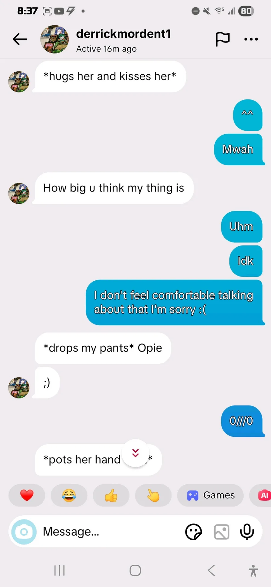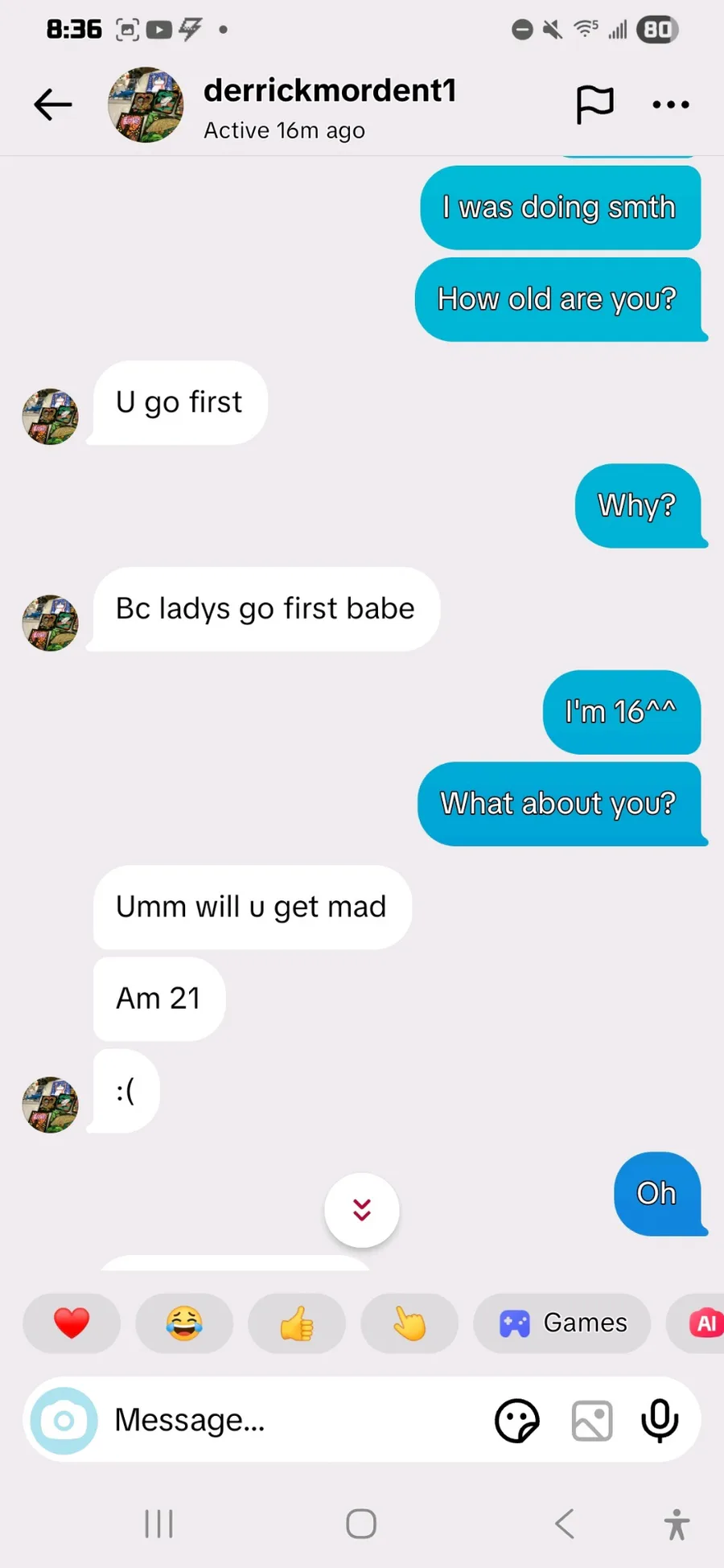Okay buddy Pack your things and get ya pedophile ahh out of here💀 Ain't no way people actually like this guy when he out here trying to fuh with a 16 year old💀💔 also ignore my gender I didn't know I was genderfluid at the time