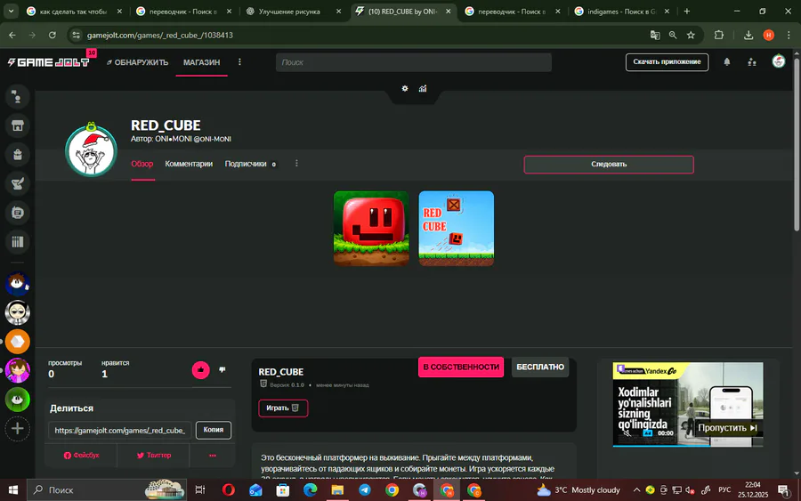 скоро выйдет абсолютно новая версия моего игры RED_CUBE
