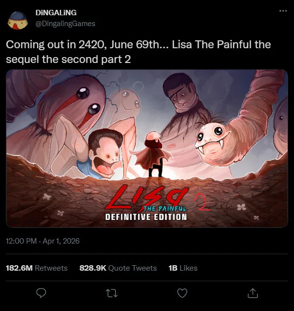 Holy shit. I can't believe Dingaling has announced that Lisa 2 the squeakquel is in the works.