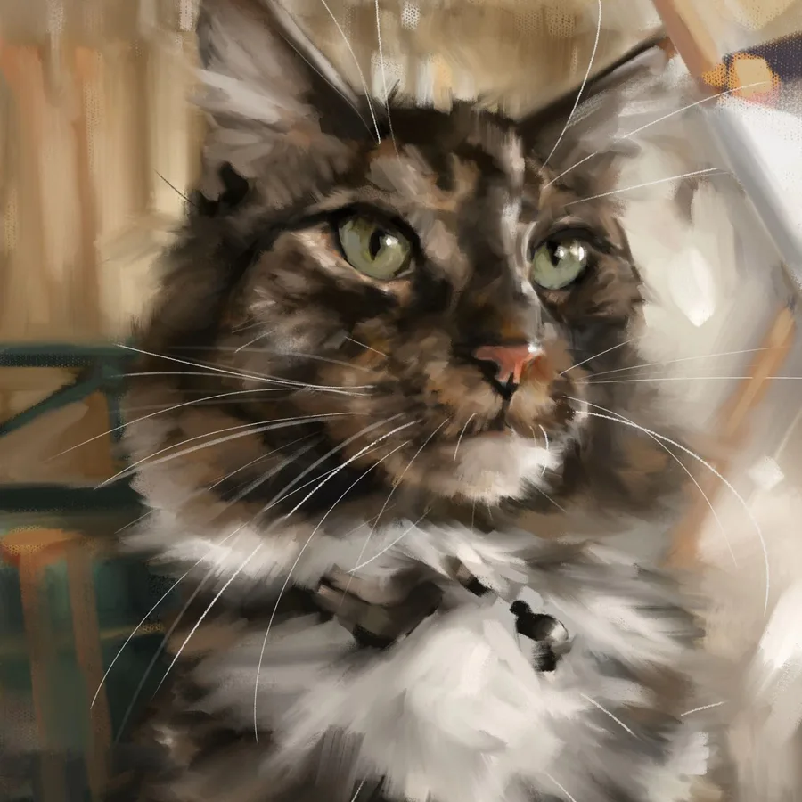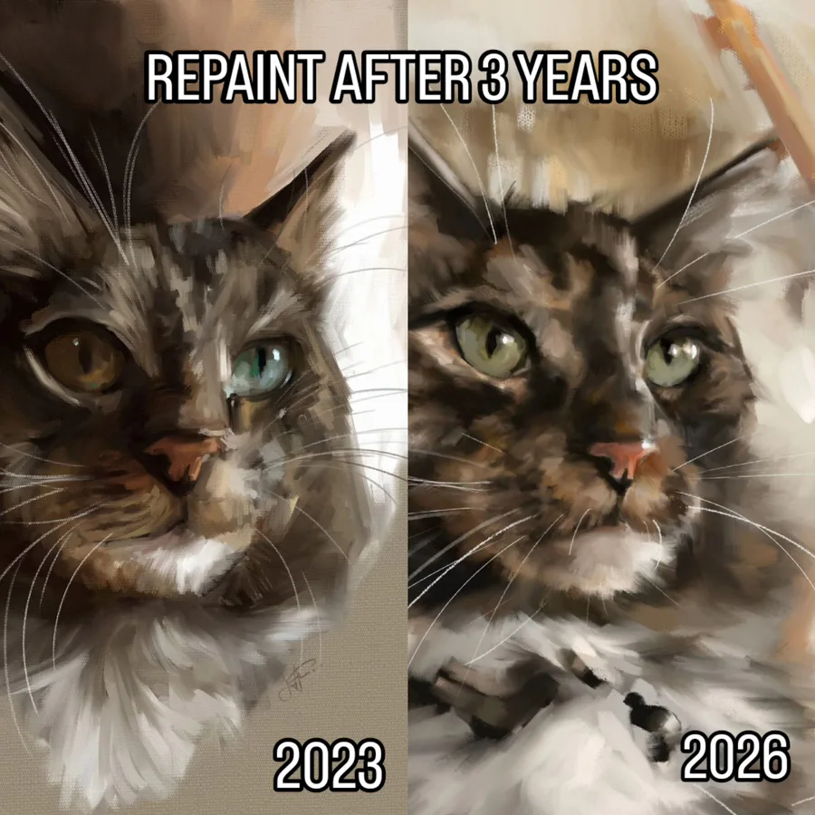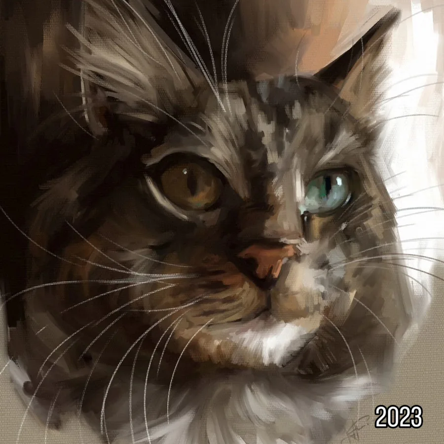 i decided to do something different while moving : ) i painted an old reference of my cat gif, i really love this photo and i wanted to paint it again : )