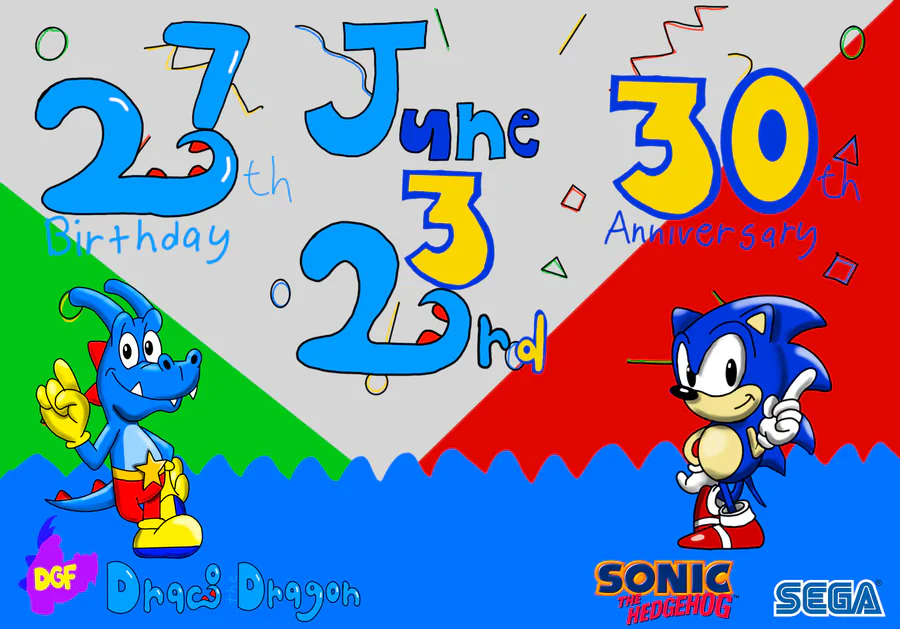 Fun Fact: Did you know that Me and Sonic the Hedgehog share the same birthday? Yeah it's true. My birthday's June 23rd, same as Sonic's how cool is that? I made this last year to celebrate our birthdays.