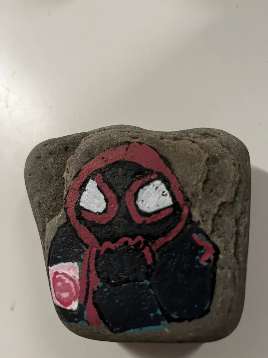 My Rock Painting of Miles Morales Spider-man