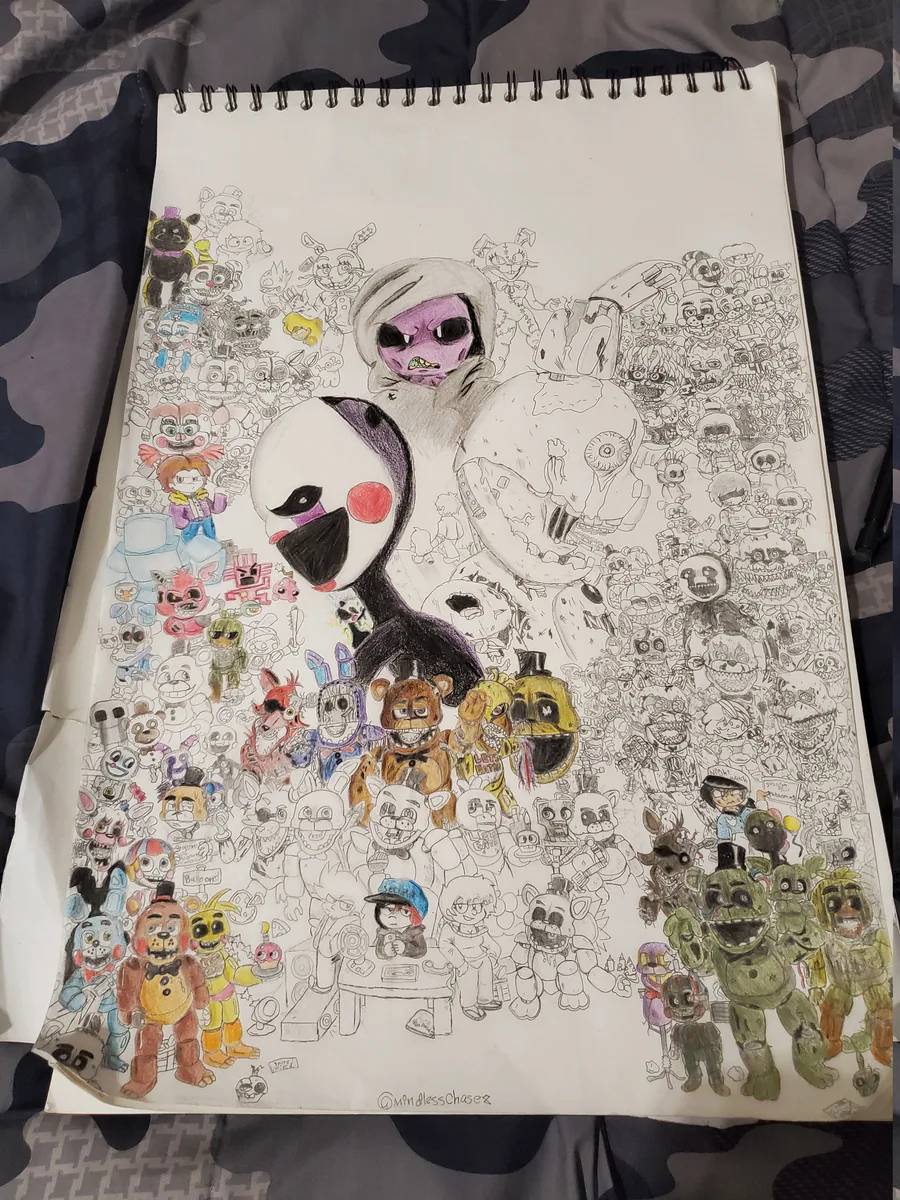 [Some of the humans here were my oc's from like 2018, This was supposed to been done. Sorry for the bad quality this book is huge]
