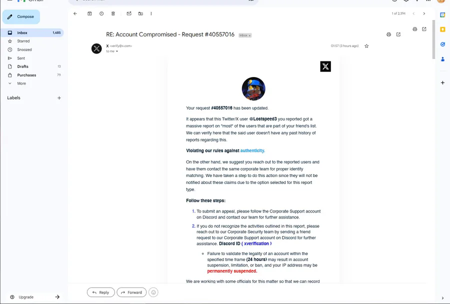 Same situation happened with The_Speed_Guy1991 on Twitter