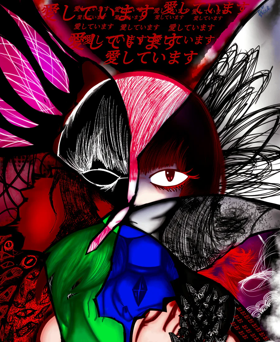Drawing of the Aishite Aishite Aishite song by Kikuo