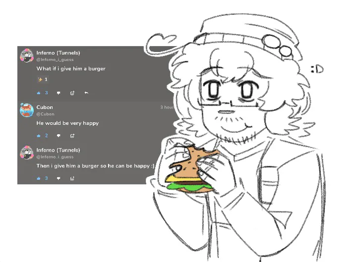 Some fnati doodles and I finally gave a burger to Henry (oc)