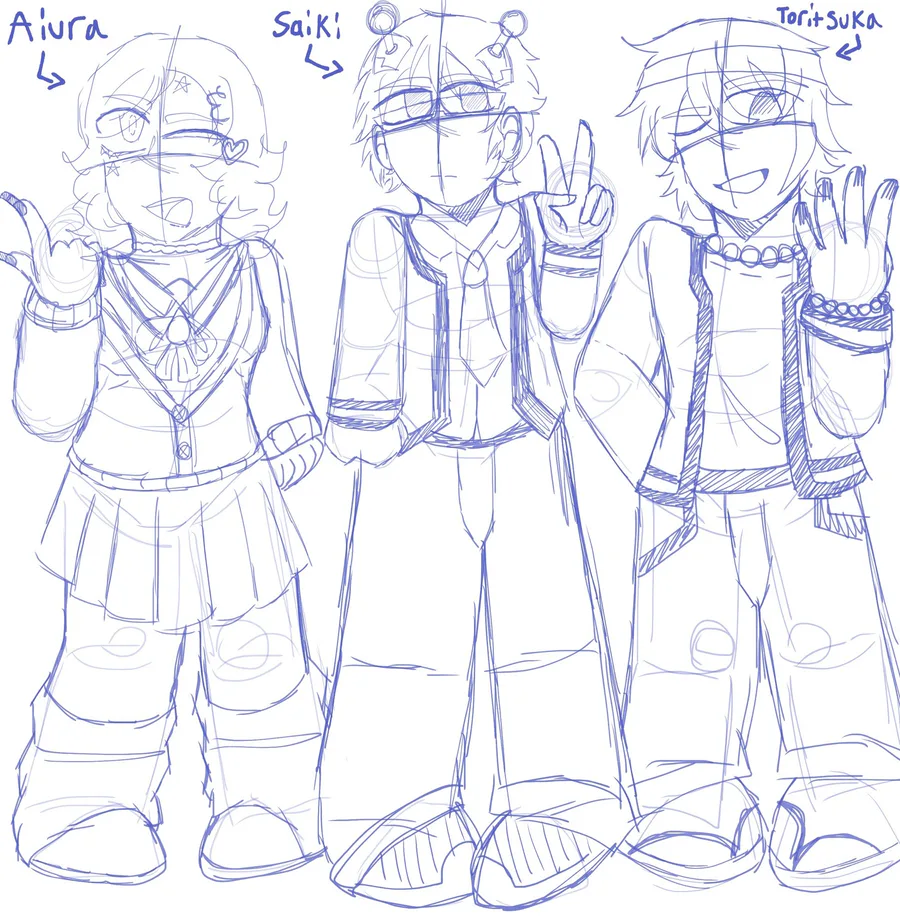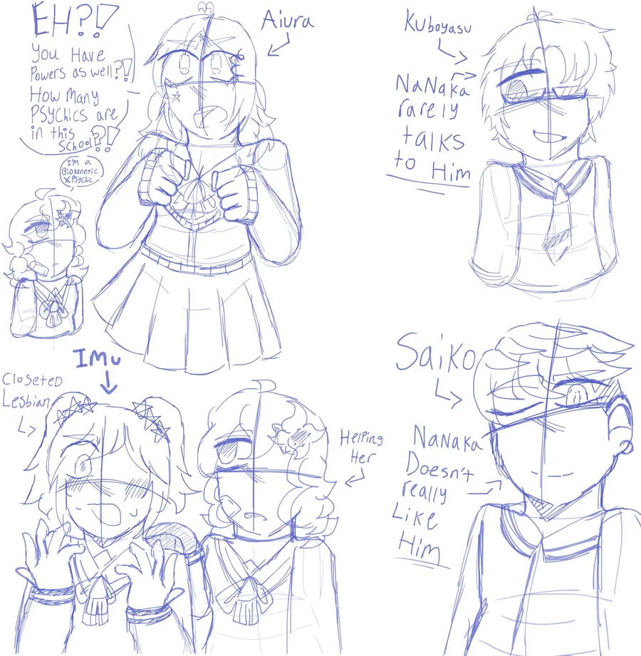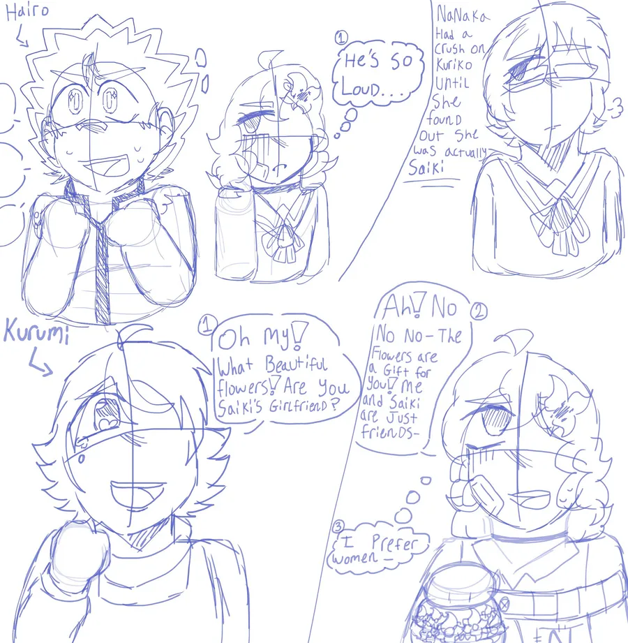 I drew some sketches of Saiki K characters interacting with my OC Nanaka ^^