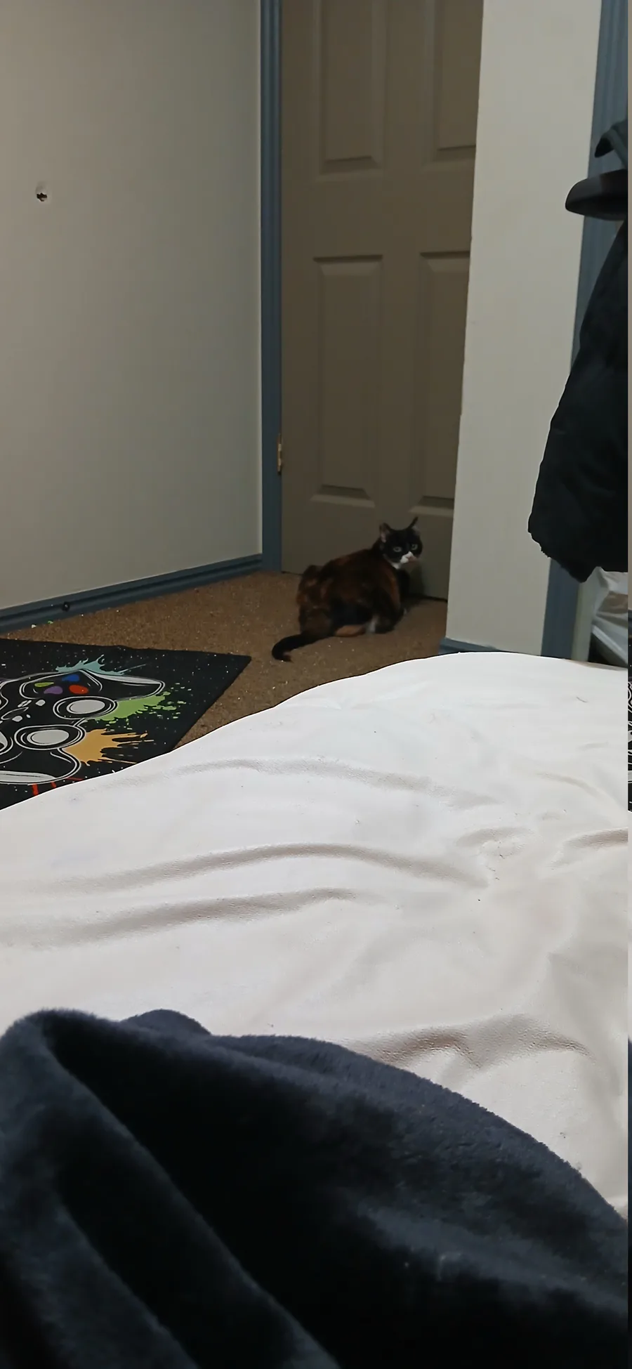 My cat whining for me to let her out but the MEAN AND BITCHY orange cat will start a fight with her. Don't mind the trash bag full of unpacked stuff