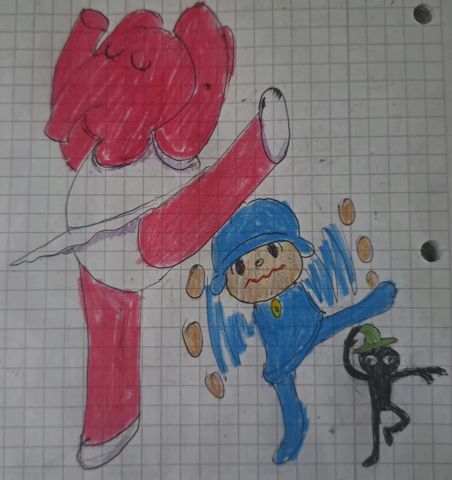 Black figure with green hat?