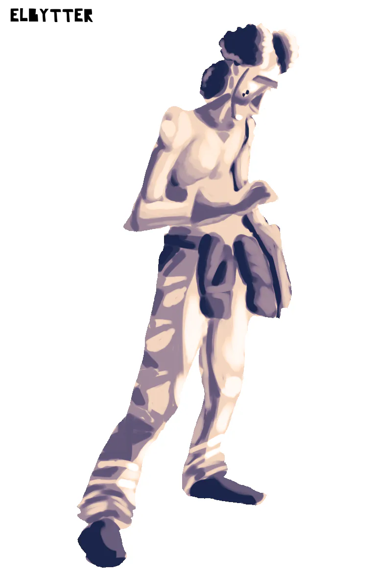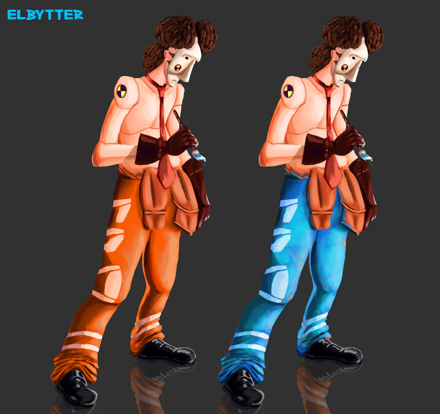 The orange and blue pants.
