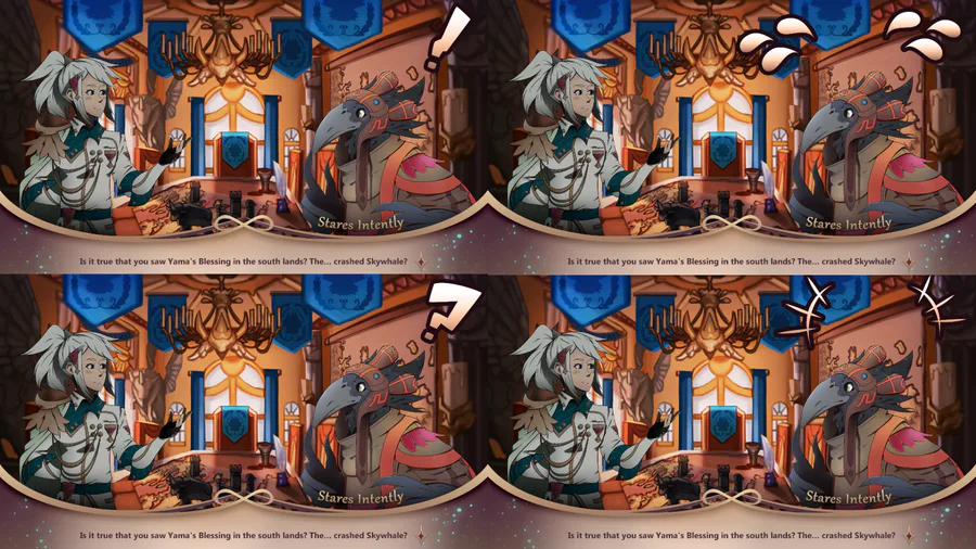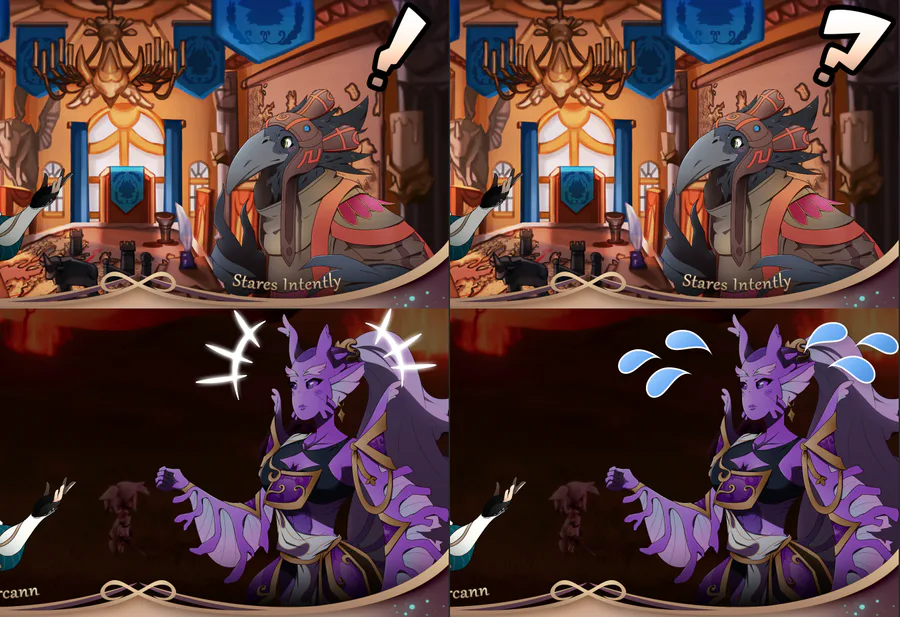 A little #gamedev art for Friday? Working on the visual novel portions of Whalefall and wanted to give characters little emotes to emphasize dialogue. (Our 2D animator already took these and BAMFed em up! They look better in motion 😁)