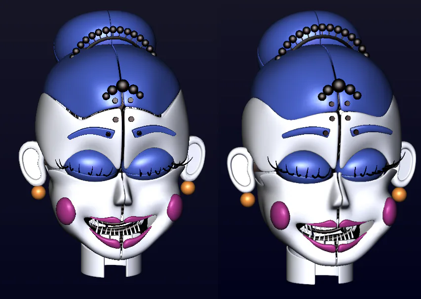 Found my unfinished Ballora v3 model and decided to improve it and continue modeling it! Left is how it was left and right is with improvements.
