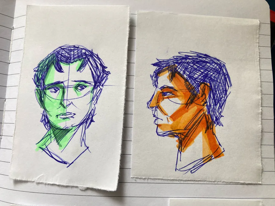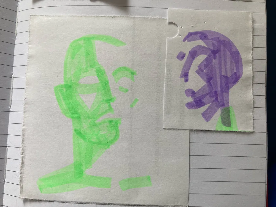 i don't have anything big, but i DO have these faces i made while at work. tried doing something fun with the colours!