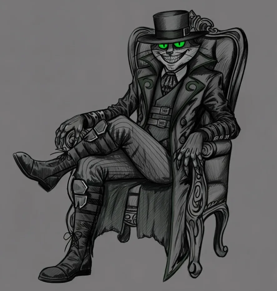 Mr. Whiskers (My OC) with the previous redesign work in a sitting pose. Concept art mostly.
