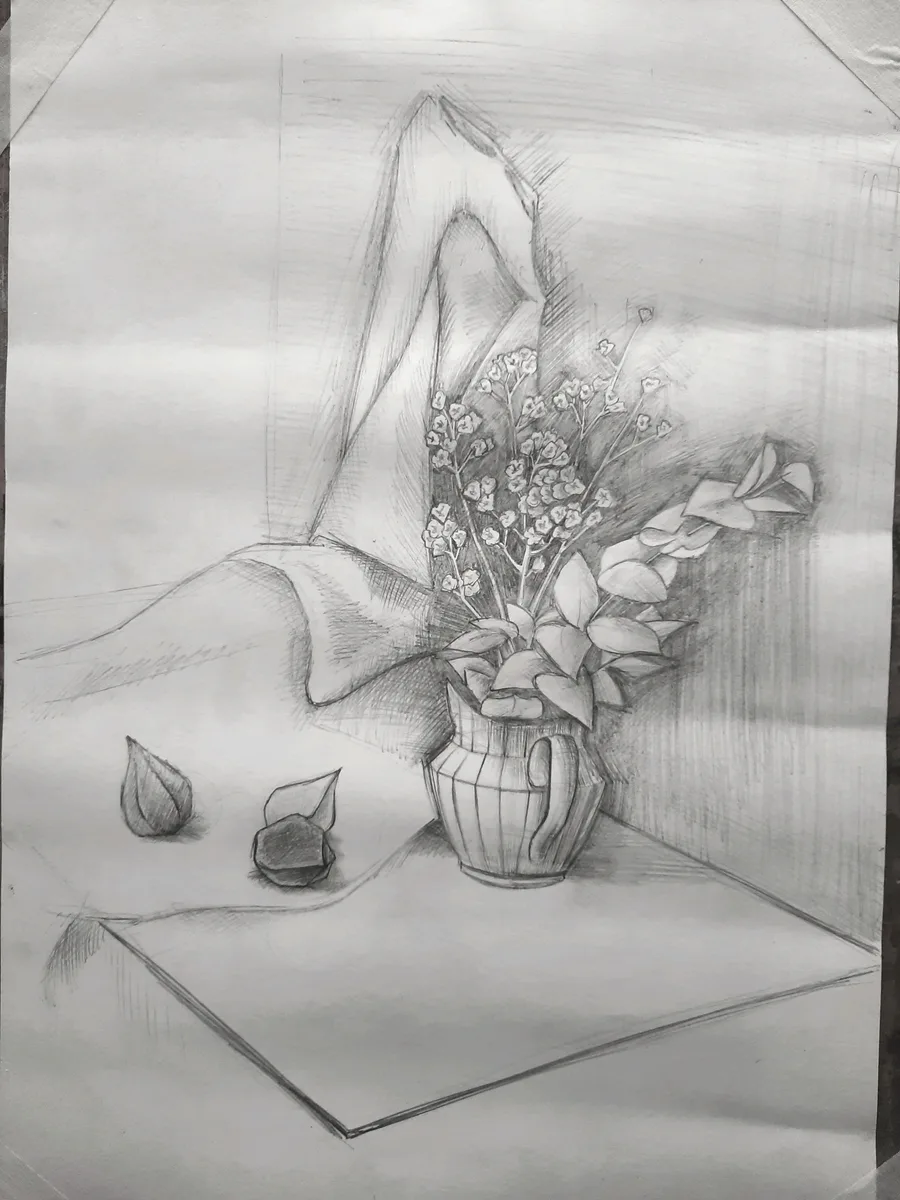 Natur-mort with physalis, drawn in the studio of ITMO University, on 17th of September 2022.