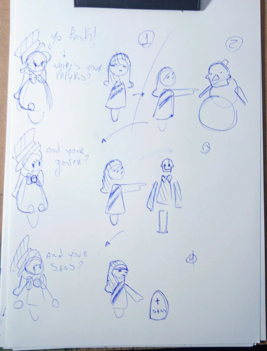 She asked where's papyrus, gaster, and sans...