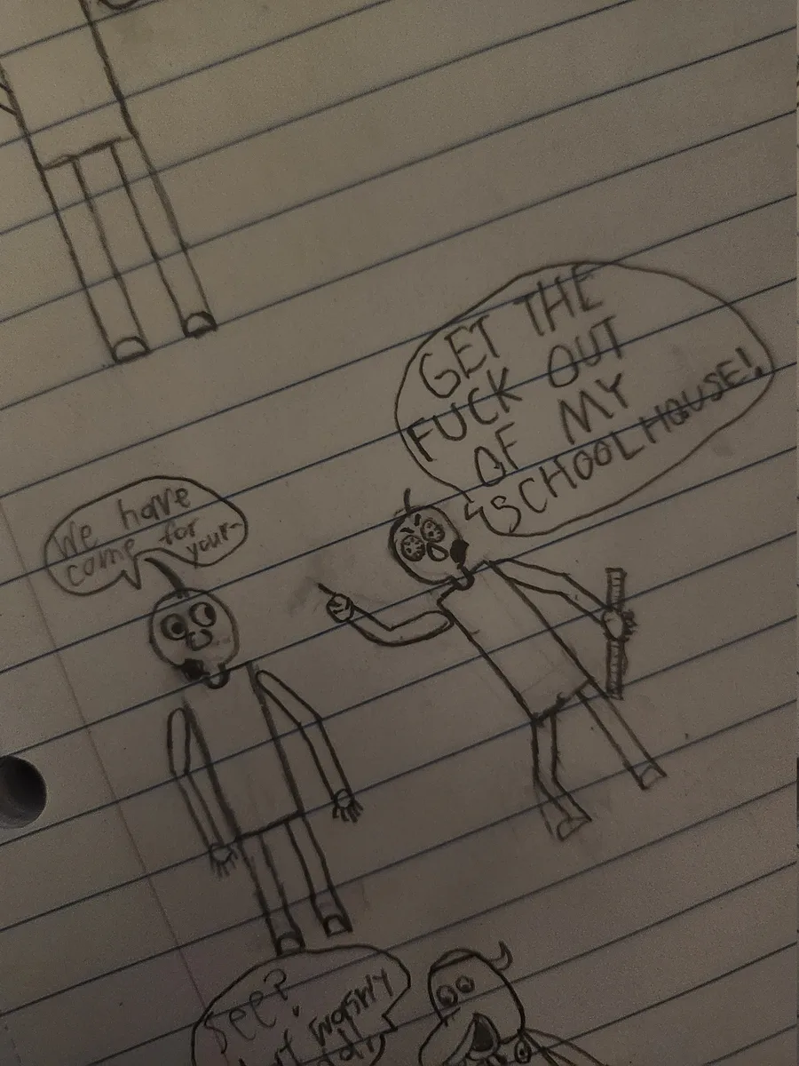 When you're bored in school so you draw random things out of pure boredom