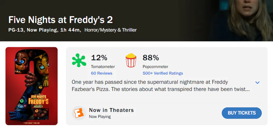 FNaF movie 2 has now 12% tomatometer on rotten tomatoes btw