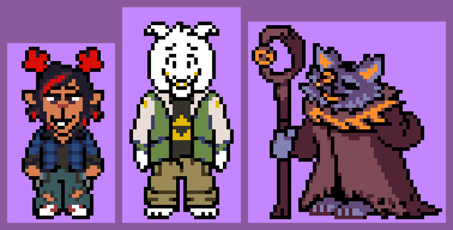 fun gang and the old fun gang don't worry, I do plan to make younger versions of Asriel, Dess, and Seam. And of course, even though he's not in this one, there's also a Lancer counterpart in the other group.