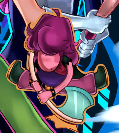 Susie! she's not as edgy as in deltarune, shes more awkward than normal susie, i suppose i'm exaggerating personality traits from canon and making their main trait less prominent.