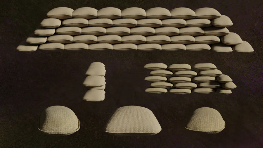Render SandBags Series WallDefences G1 - N1 - 3-Props - Model 3D. #b3d, #blender, #unity, #game, #props, #sand, #bags, #sandbags, #sack, #barricades, #wall, #defences, #sandsofBags, #gameBarricades, #fences.