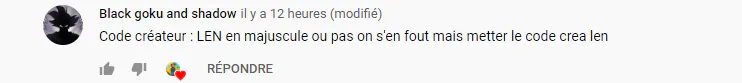guys yesterday a youtubeur fortnite put a heart in my comment he has 1.3 million subscribers. I wrote : Creator code: LEN in uppercase or not who cares but put the code crea len