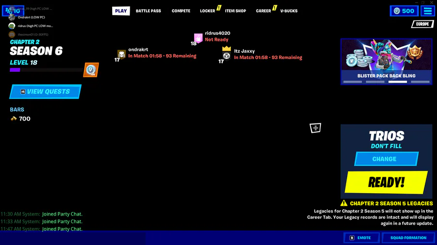 Chapter 2 Season 6 XP Rates: