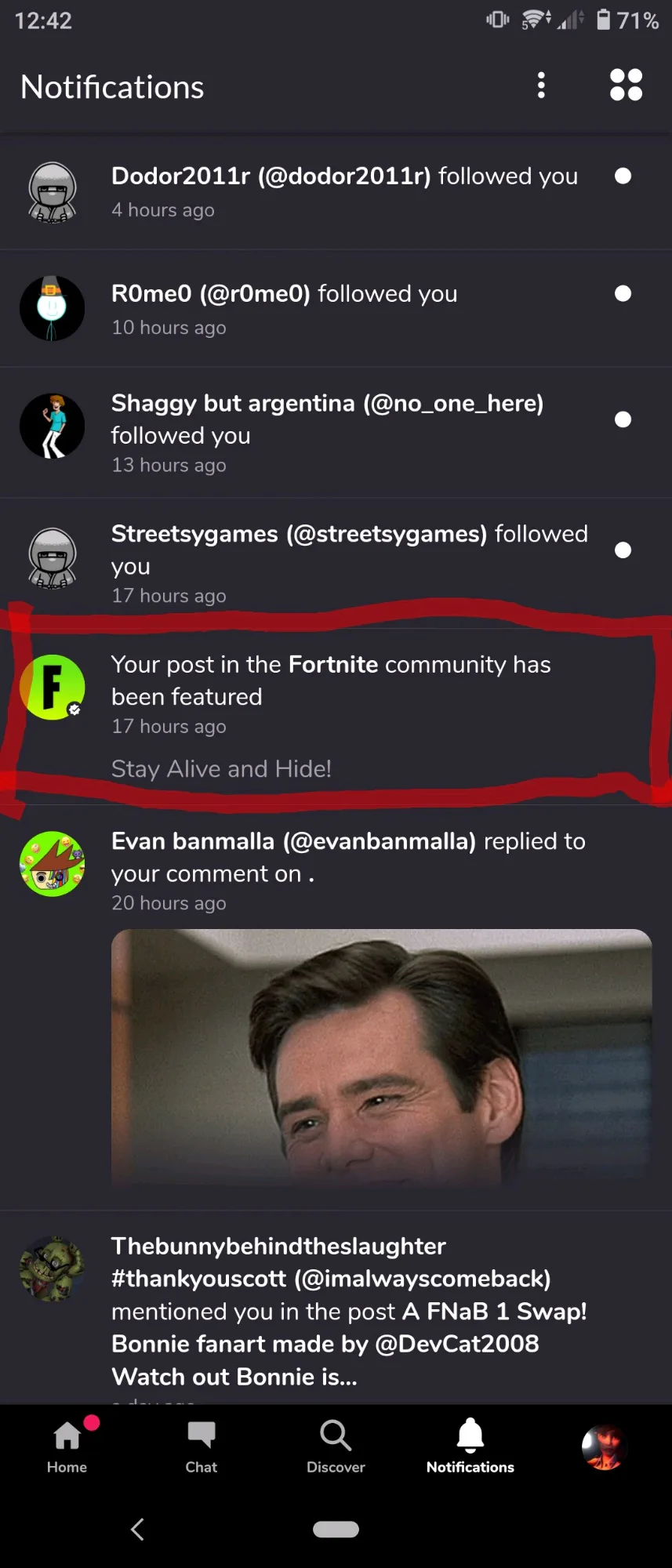 The fortnite community has featured my post "stay alive and hide"