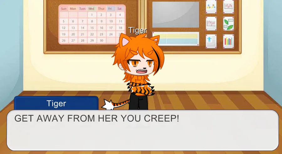 Backstory: Tiger is Fluffy's old friend and sadly Fluffy had to move away.Tiger is very protective and kind to Fluffy.