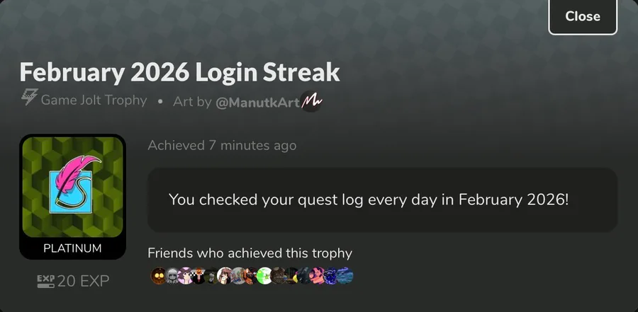 Finally completed the Login Streak Quest of this month, February is really a short one compared to all the other months.