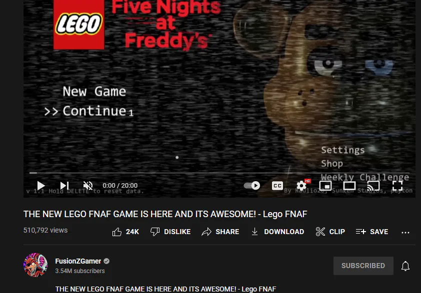 I watched FusionZGamers gameplay of Lego FNAF1 fan game and thought it was interesting #HowIFoundGameJolt