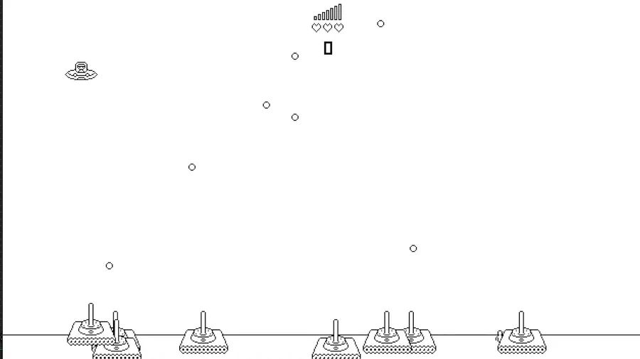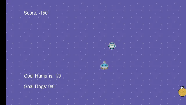 Loading...Player 1 gets points by rescuing stranded things. Loses points by getting hit by asteroids.