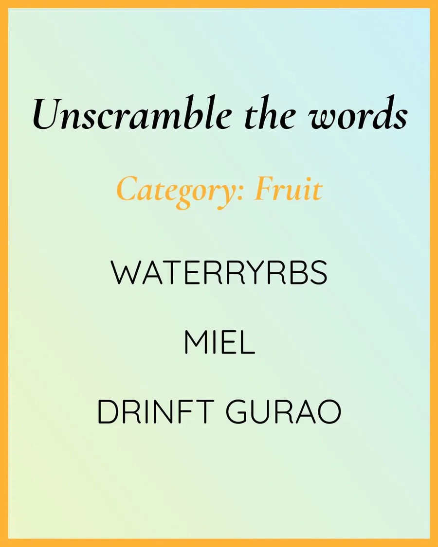 Can you unscramble the words and find out which three fruits are written?