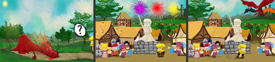 3d page of #EndlessHero #endlessrunner intro comic! Our hero told everyone that HE killed the dragon and became...A LEGEND!