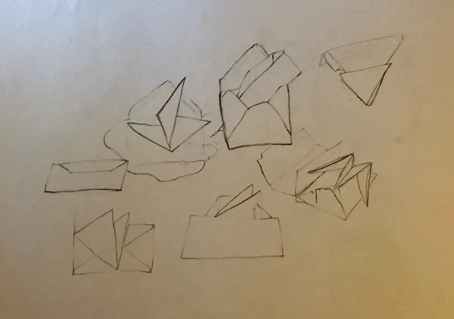 Art class assignment where I drew various folded and form paper objects