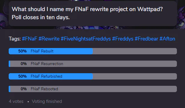 Well shoot. This is a problem. Round two I guess. What should I call my FNaF rewrite?
