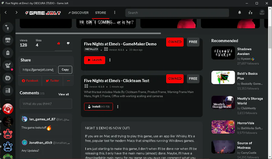 I've have made a test for my Clickteam version of Five Nights at Elmo's.