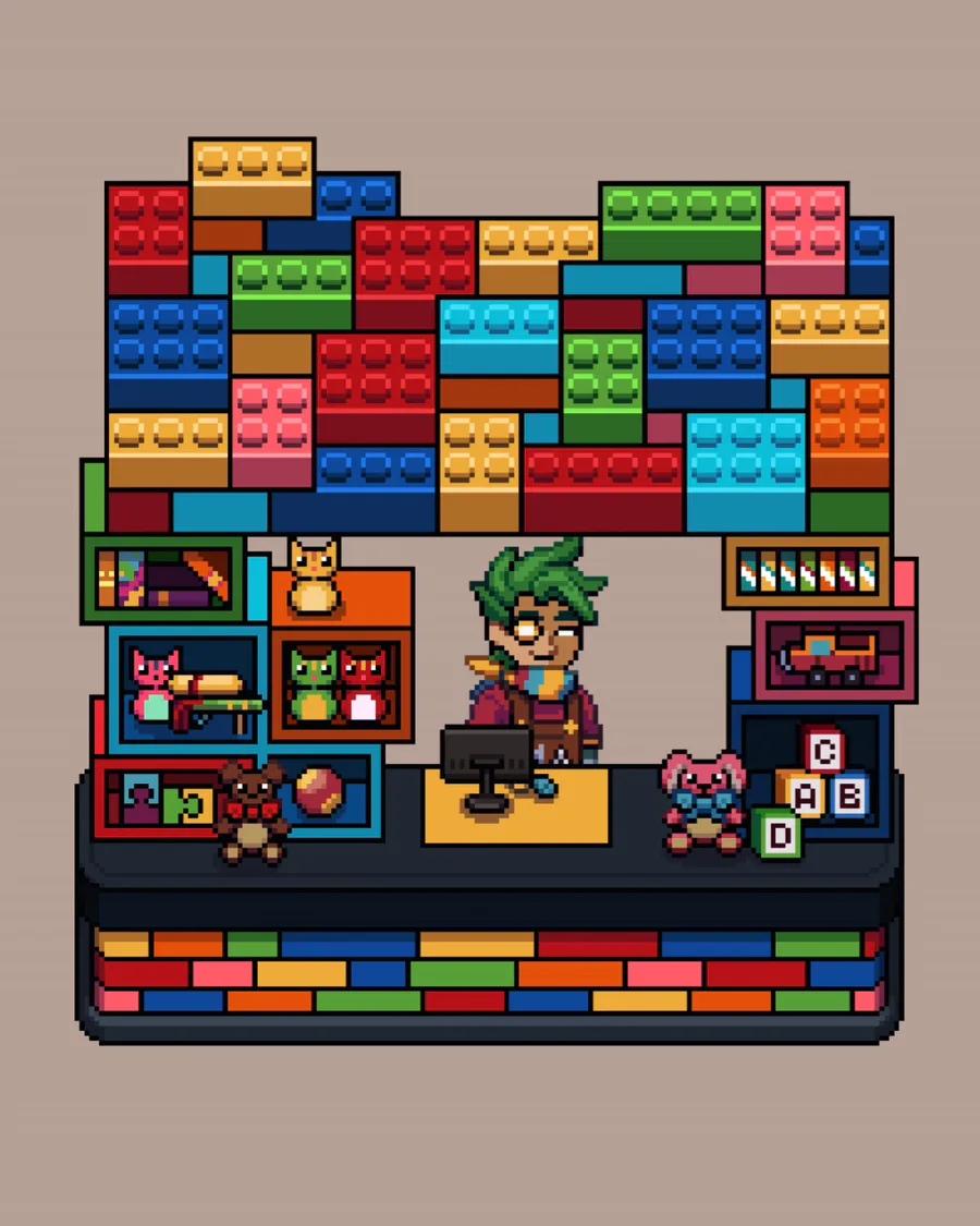 Loading...The coolest toy stall in High School Hills is almost here, packed with plushies, blocks, and all kinds of pixel fun.