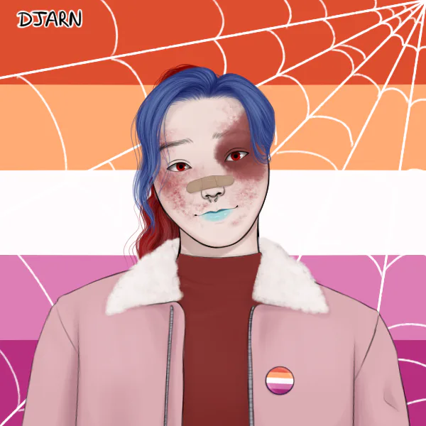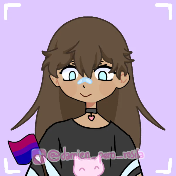 I made myself holding le bisexual flag because I am bisexual overall lol. This was made in picrew so