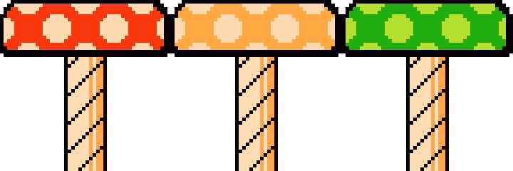 So I had this idea for a Mario maker level. The level would have mushroom platforms everywhere, and the color of the mushroom would alert the player of nearby power ups. Thing is...