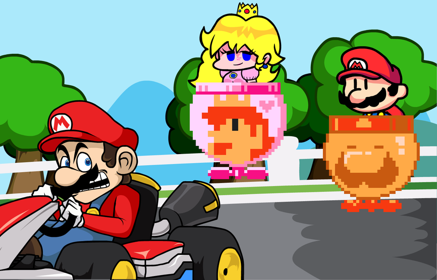 Mario Madness mockups, but Mario and Peach replace Boyfriend and Girlfriend.