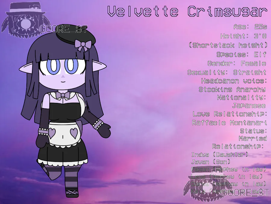 Welcome to GCore_ST, please check the article for any information about me and this post has art references of my main OC characters to check it out!