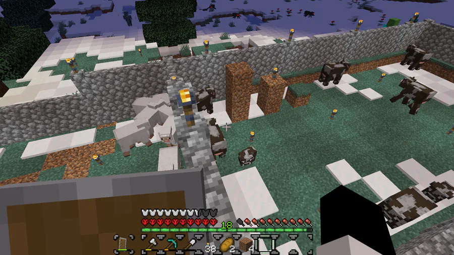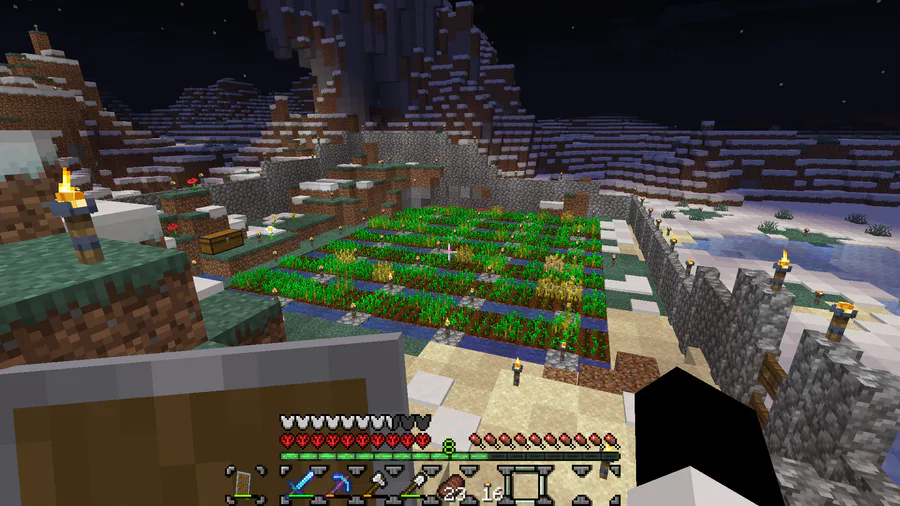 So uh... I made hardcore world without telling ya'll, and it was WAY better then my 2 other attempts, I already got 8 diamonds... 8 again? I made a huge farm, good animal farm, wall like LTN did, and a mob farm! Oh ye, also I hate amogus jokes, but...