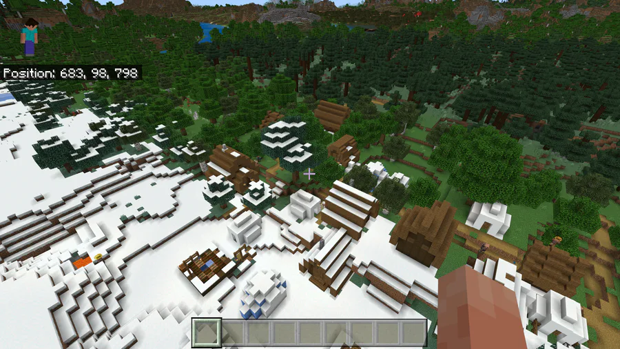 UH GUYS HOW IS THIS IMPOSSIBLE A SNOWY TAIGA JUST SPAWNED IN A PLAINS BIOME RIGHT NEXT TO A SNOWY BIOME AND IGLOOS ARE IN THE PLAINS BIOME HOW?!!?!?!?!111?!?11