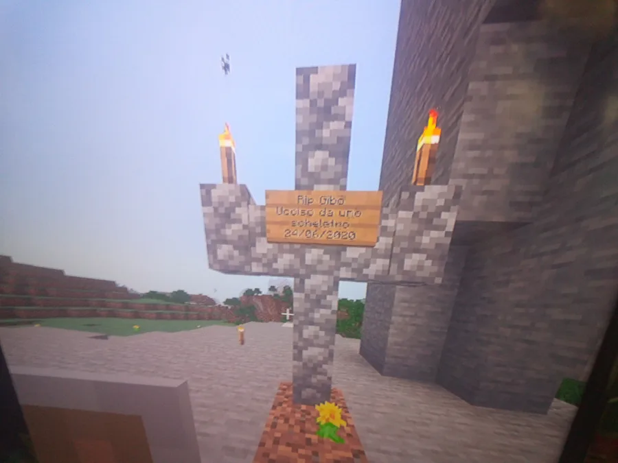 The sign reads: "RIP Gibo, killed by a skeleton"