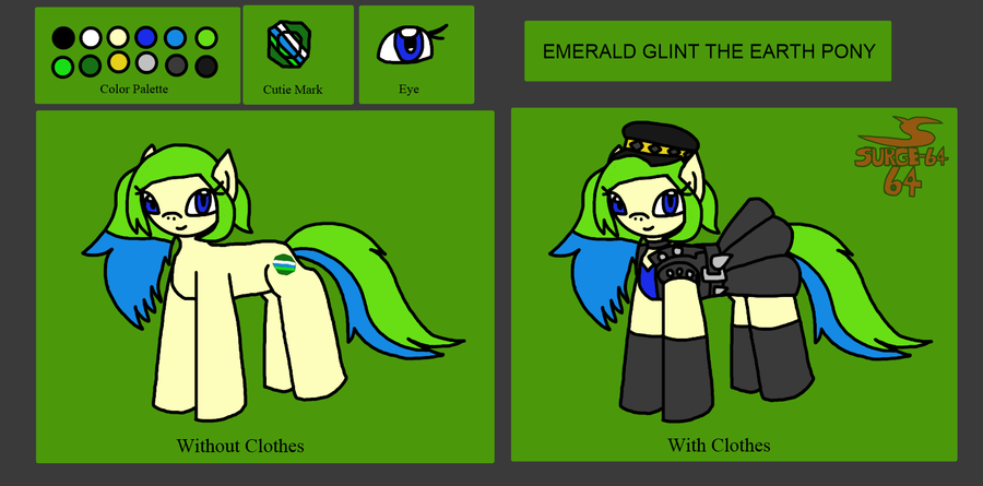 2 drawings of my OC Emerald Glint.