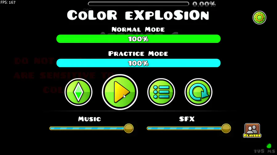 Loading...CoLoR eXpLoSiOn I, heres the original level also made by me last year, u can compare this with the sequel, WARNING: flashing lights and might contain inappropriate art for some users