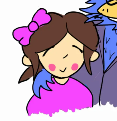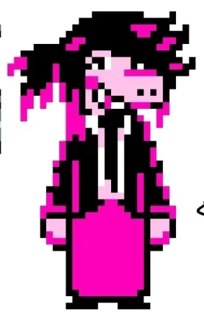 Susie! she's not as edgy as in deltarune, shes more awkward than normal susie, i suppose i'm exaggerating personality traits from canon and making their main trait less prominent.