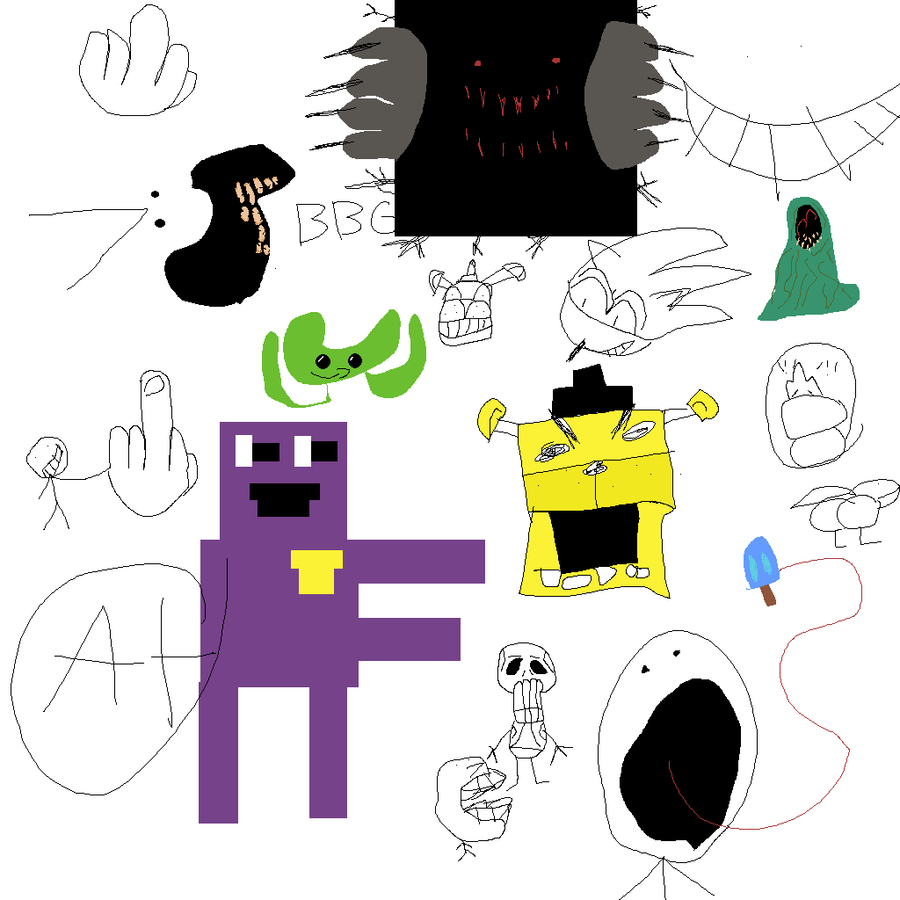 little man making cool poses against a being made up of the dead